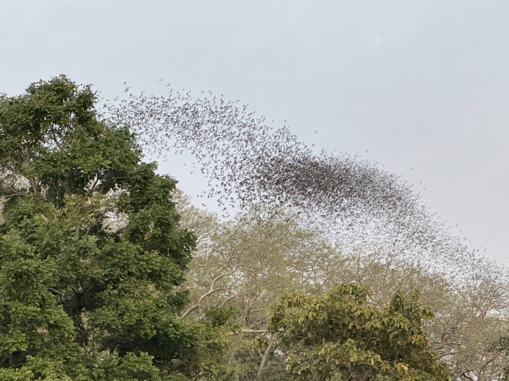 30分に渡り無数のコウモリが山から出てくる様子は天空が黒い帯状が漂いもうビックリ!