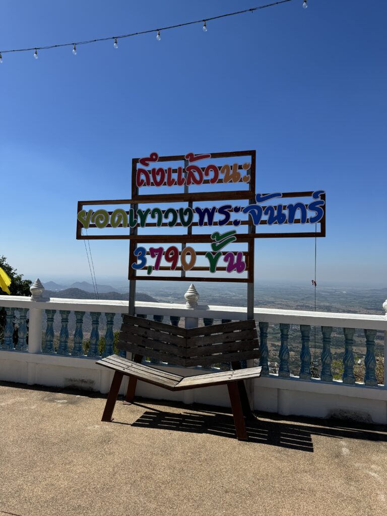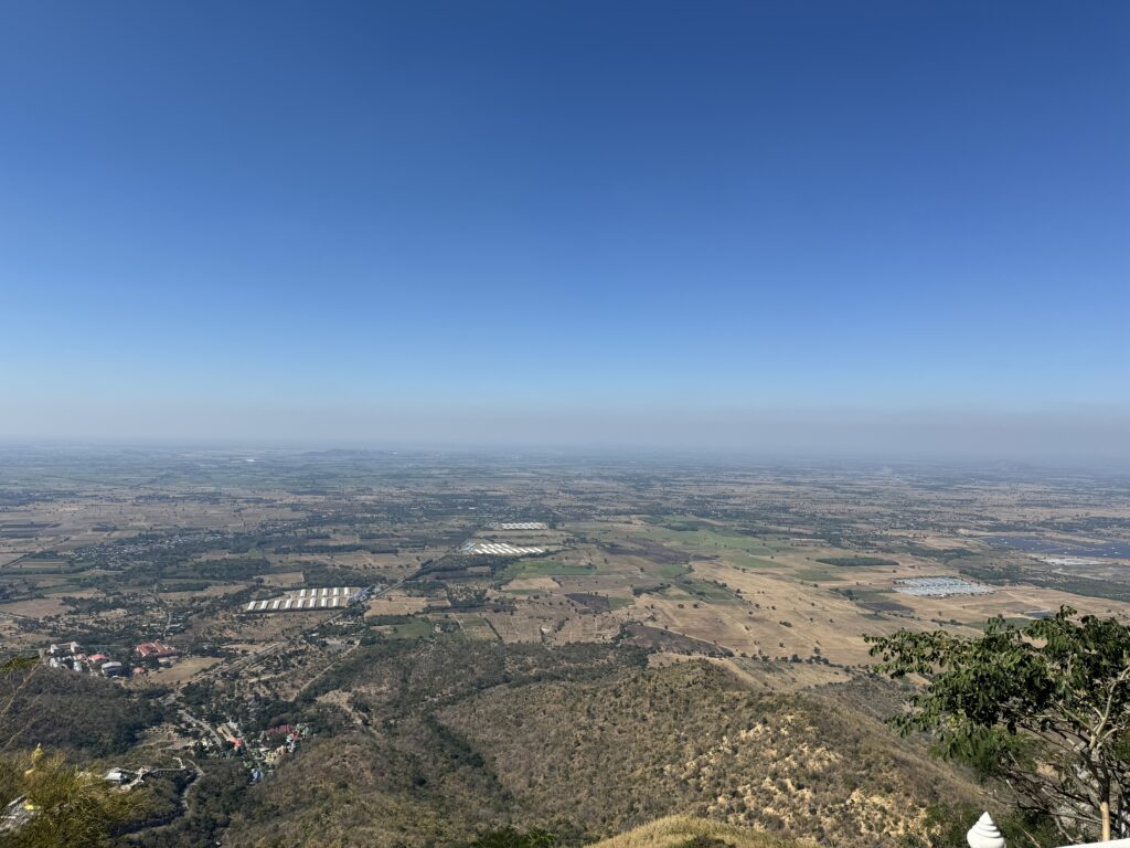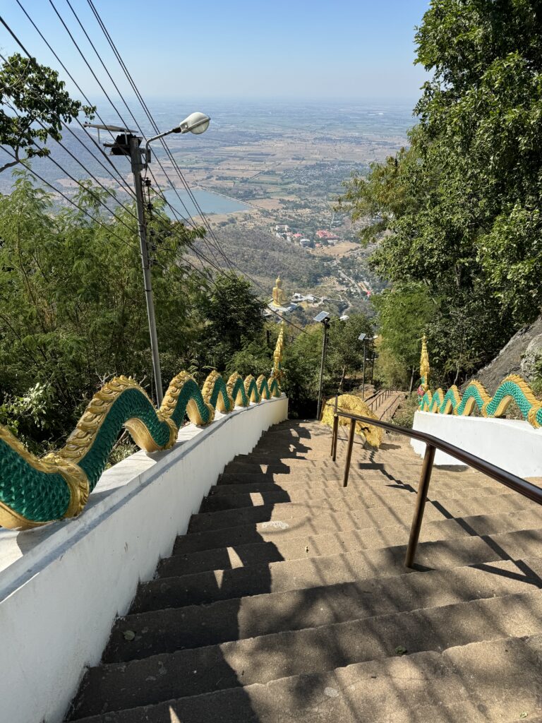 ・「ワット・カオ・ウォンプラチャン」はこの山の麓にあり、寺院から山頂までは約3,790段の階段があります。麓から山頂までの距離は約1,680m、海抜は約650mで、山頂までの所要時間は個人差がありますが歩いて1時間半~2時間ほどかかります。周囲は、森林や平野がある急勾配のエリアで、階段を登り切った山の頂上からは眼下に広がる壮大な景色が見渡せます。
