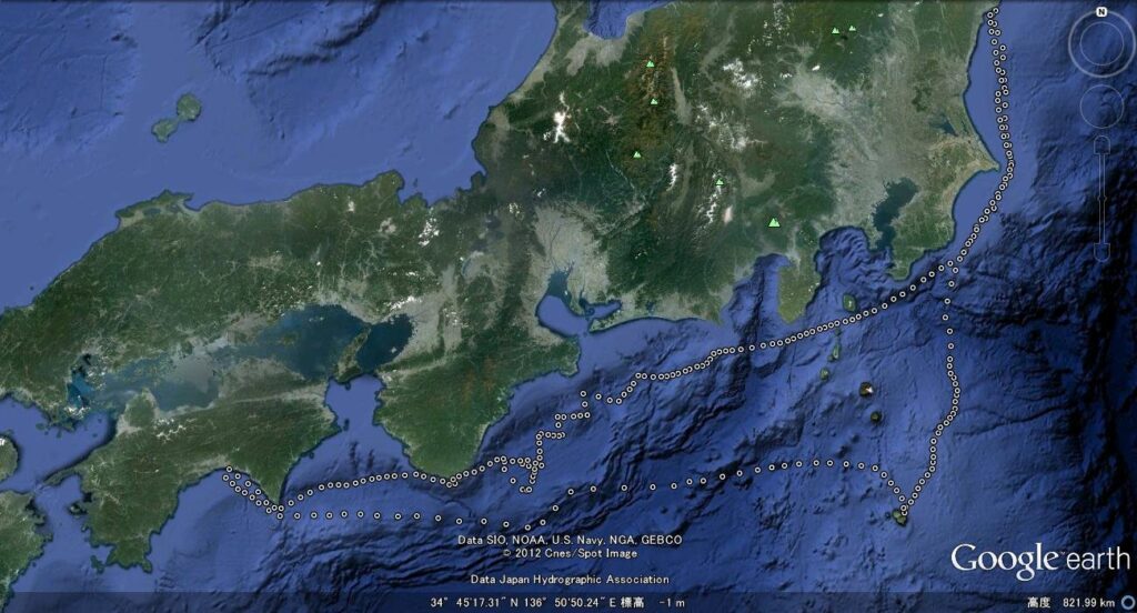・実家に行ったとき学生の時’95 夏合宿(16日間)での航海記録が出てきたのであります。北緯、東経を入力しマッピング化してみました!