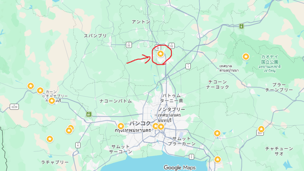シラチャから北に30㎞圏内にあったかとおもいます。