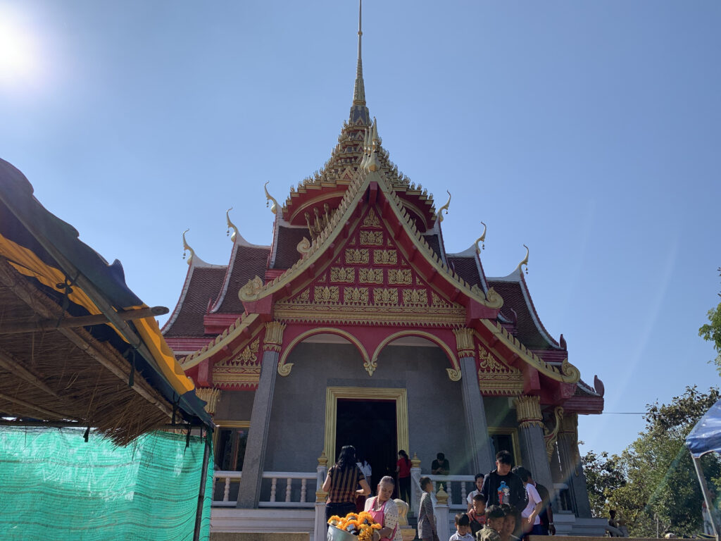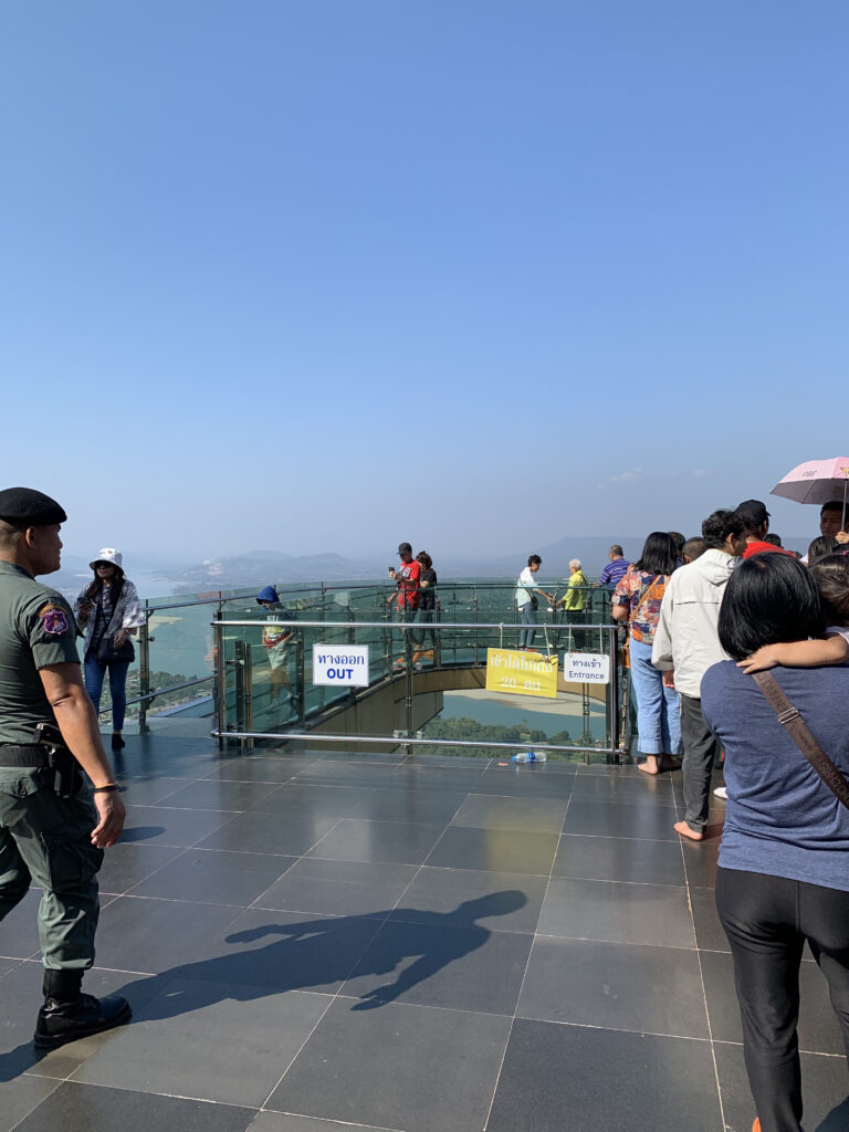 ワット・パー・ターク・スアには、2016年に町を一望するスカイウォークが設置され、絶景が楽しめるということで人気を呼んでいます。スカイウォークは敷地内からせり出していて、足元が透明の床になっているため、ちょっとしたスリルを味わうことも。メコン川の向こうにラオスの国土が広がるパノラマの景色を見渡すことができます。