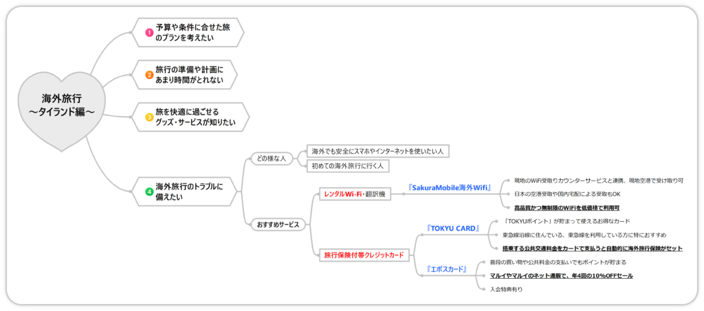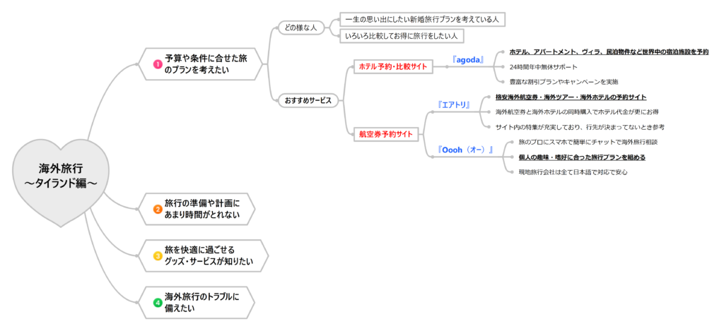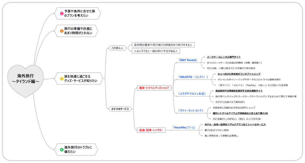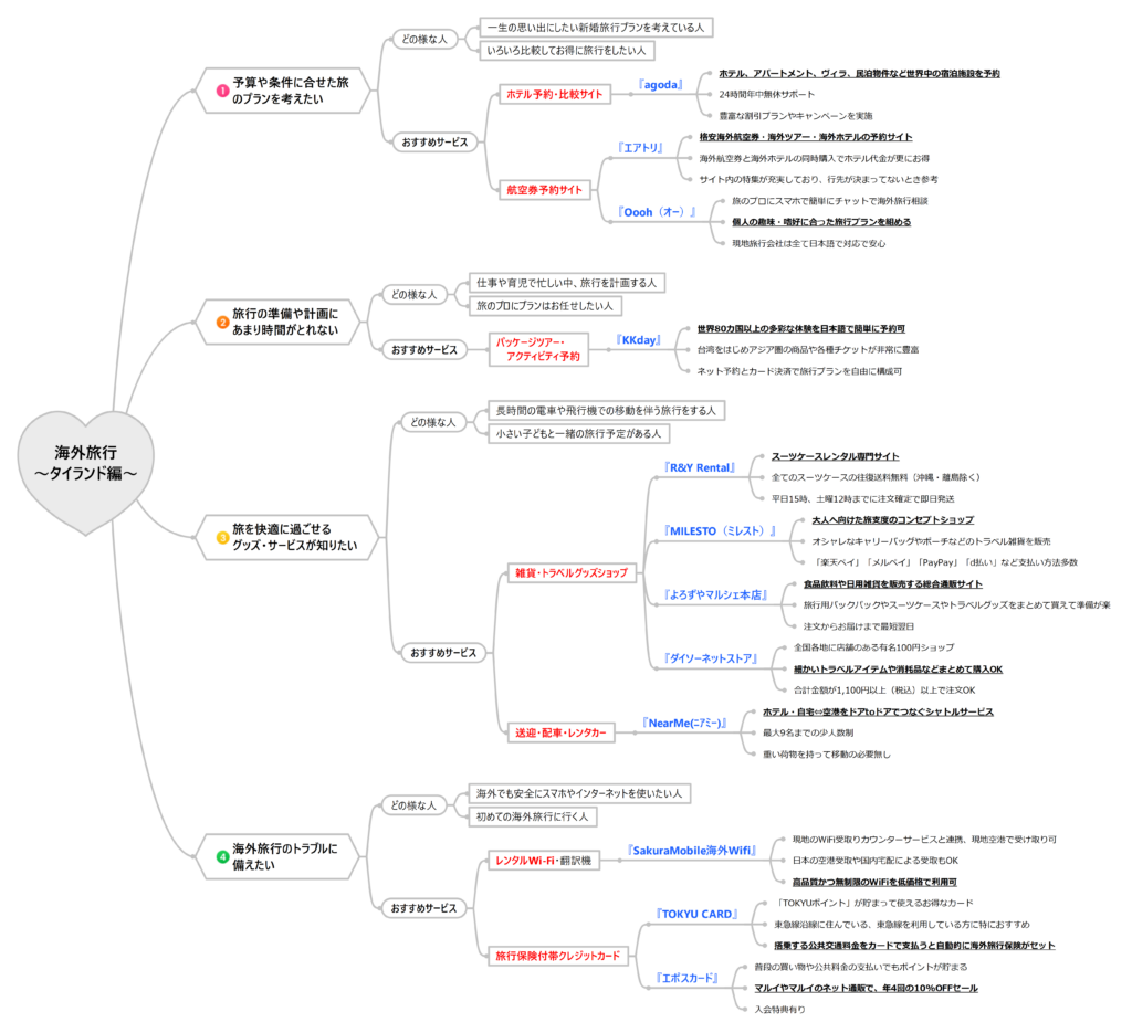 ▶さてサービスについて大別して4つ挙げ、マインドマップで整理してみま